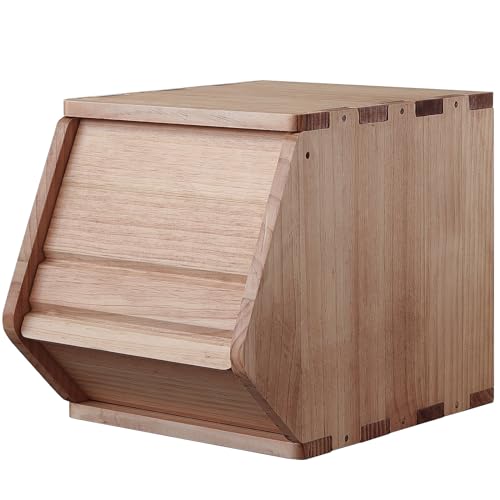 unununu - Stackable Solid Wood Storage Chests,Bins with Lids,Modular Wooden Toy Box,Closet Storage Organizers,Hall Entryway Cabinet,Drawers,Potato,Onion,Bread,Classify by Items,11.75”W(1 Pack)