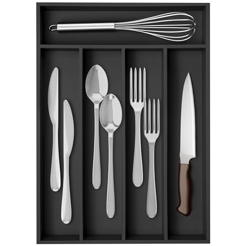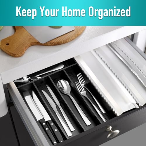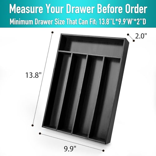 - ✅【Keep Your Home Tidy】This beautiful silverware organizer has 5 pcs deep compartments and can be placed into any drawer or desktop, which helps you to see everything at a glance and keep away from messy. The perfect space-saving utensil organizer helps you to reach the desired item that you are looking for. Whether you are looking for your favorite knife or spoon, this kitchen drawer organizer makes it completely simple and easy. We highly recommend to measure your drawer before order.