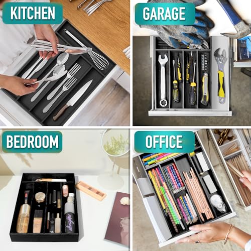 - ✅【Multifunctional Management】Our multi-purpose cutlery organizer is not only suitable for storing silverware, but also suitable for storing disposable tableware, sundries, cosmetics, hair accessories, repair tools, art sets, stationery. With this silverware organizer for drawer, drawers in the kitchen, bathroom, dresser, room, office can be efficiently organized. This is the best home gifts, everyone would like to have such practical gifts for drawer organizer home.