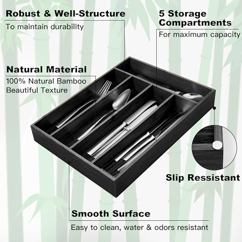 Upassion - Silverware Organizer Black Bamboo Utensil Organizer Black Kitchen Drawer Organizer Silverware Holder Cutlery Organizer in Drawer Flatware Organizer