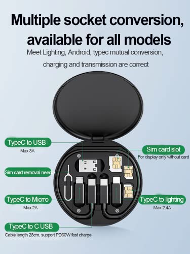 Generic - USB Adapter Cable Box, Lightning Converter, Type C, Contains SIM Card Slot (SIM Cards Not Included) Eject Pin (Black)