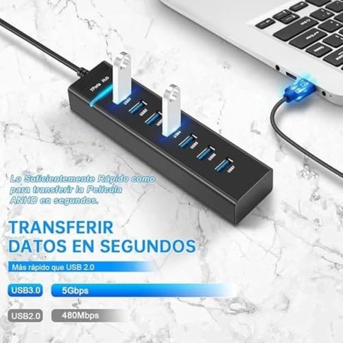 Generic - USB Hub Adapter Ultra Slim Support Power & Data & LED Light Universal Multi-Port for Laptop, PC, MacBook, Flash Drives, Mobile, mouse, keyboard, Desktop, Extend cable 30CM (Black, USB 2, 7 Port)