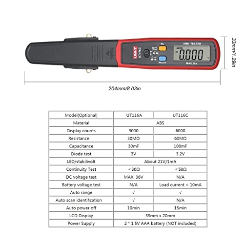 UNI-T - جهاز اختبار اس ام دي ذكي من يوني- تي، جهاز مقاومة، مشبك اختبار المكونات، مقياس متعدد السعة والاستمرارية، قياس الصمام الثنائي، قابل للدوران بمقدار 180 درجة
