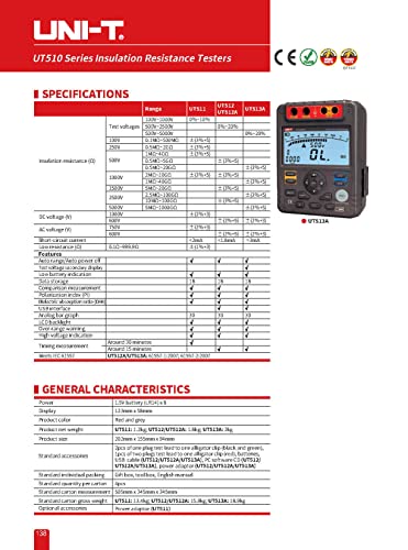 UNI-T - جهاز اختبار مقاومة العزل الرقمي من يوني-تي، يختبر الجهد من 500 فولت إلى 2500 فولت، UT512