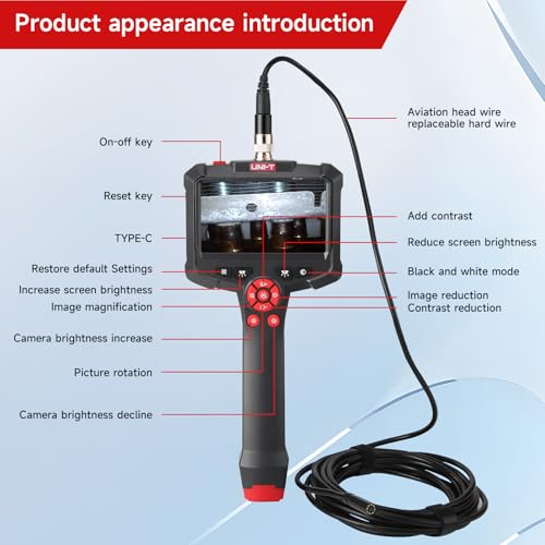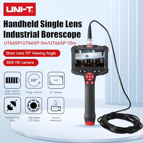 UNI-T - UT665P Industrial Borescope Inspection Camera 10m Flexible Cable Handheld Screen for Car Engine Pipe HVAC Inspection