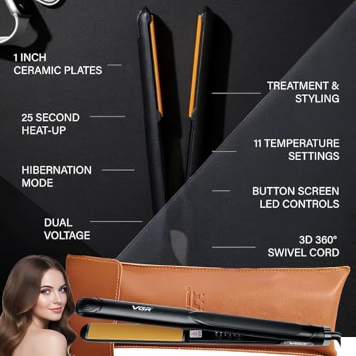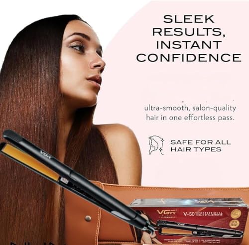 Generic - مكواة فرد الشعر الاحترافية V-501 مع ألواح من السيراميك ودرجة حرارة قصوى 580 مئوية و5 إعدادات للحرارة وإيقاف تلقائي، لون أسود