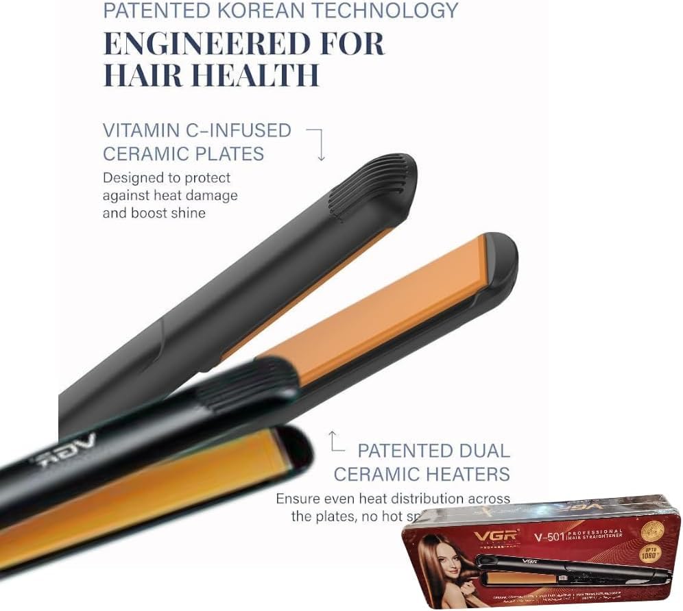 • تقنية متطورة: تتميز بتقنية كورية مع ألواح سيراميك غنية بفيتامين سي وسخانات سيراميك مزدوجة لتوزيع الحرارة بالتساوي.