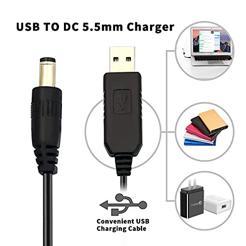 V TELESKY - كابل طاقة USB إلى تيار مستمر من في تيليسكيه (4 قطع)، محول شحن من 5 فولت إلى 12 فولت بمقبس 5.5 × 2.1 ملم للأجهزة التي تعمل بجهد 12 فولت (أسود، 1 م)