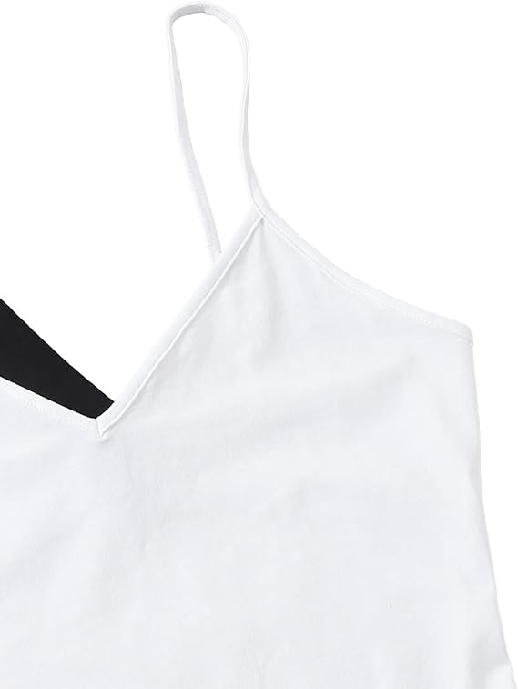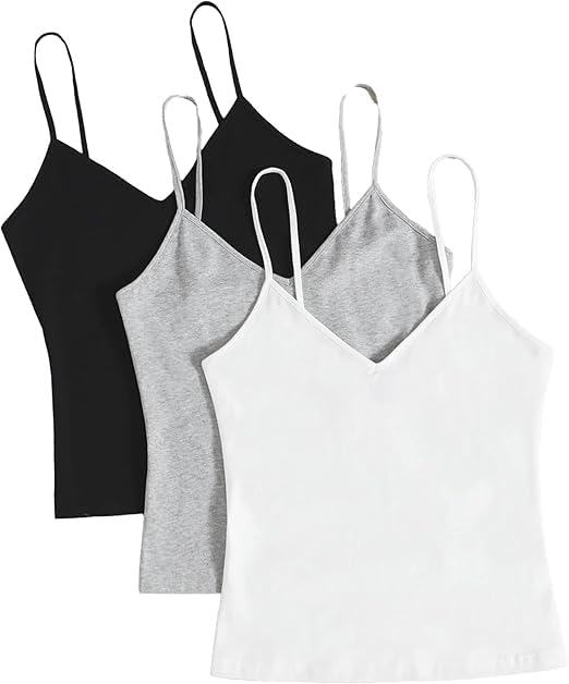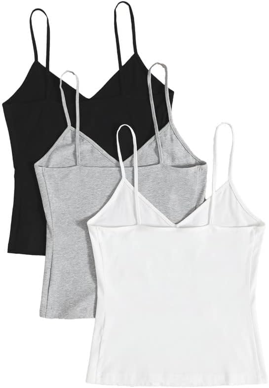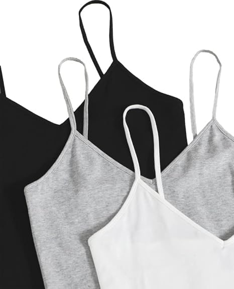 هنادي - طقم توب نسائي سادة مرن بحمالات رفيعة برقبة على شكل V من ثلاث قطع متعدد الالوان مريح للارتداء اليومي