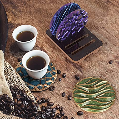VAODO - VAODO Epoxy Resin Coaster Molds for Resin Casting, 4Pcs Different Pattern Coaster Molds with 1Pc Coaster Stand Storage Molds, DIY Art Silicone Casting Molds for Home Decoration