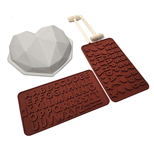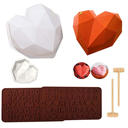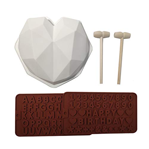 VARMHUS - مجموعة قوالب خبز سيليكون على شكل قلب ماسي مكونة من 5 قطع، قوالب بتصميم حروف وأرقام للشوكولاتة والكيك والكوكيز والحلوى ثلاثية الأبعاد لأعياد الميلاد من فارمهوس