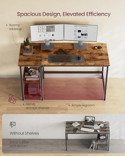 VASAGLE - مكتب كمبيوتر ، كتابة مع رفين على اليسار أو اليمين طاولة عمل لغرفة المعيشة والمكتب إطار ستيل صناعي بني ريفي وأسود LWD55X