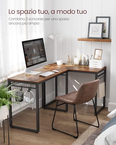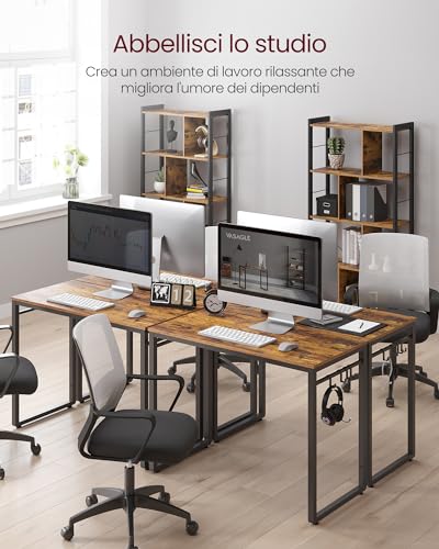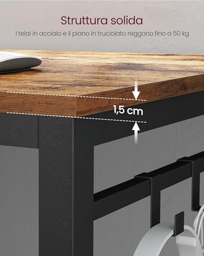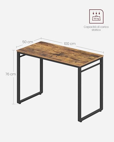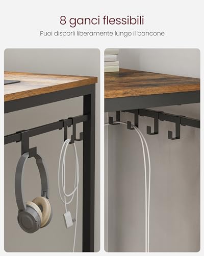 VASAGLE - مكتب كمبيوتر وكتابة من فاساجيل، طاولة مع 8 خطافات، الأبعاد 50 سم × 1 م × 76 سم، مناسب للدراسة وغرفة النوم، سهل التجميع، مصنوع من الصلب، تصميم صناعي، باللون البني الريفي والحبر الأسود، موديل LWD045B01