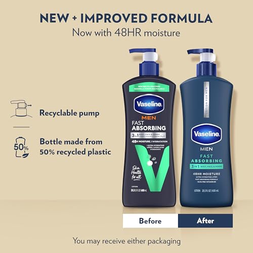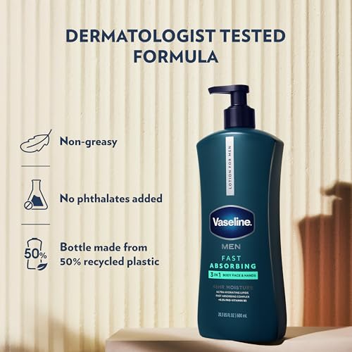 - Vaseline Men's Fast Absorbing lotion provides non-greasy healing moisture for healthy looking, resilient skin