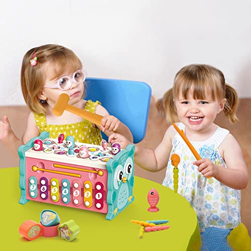 VEAIS - ألعاب صيد خشبية 8 في 1، لعبة صيد مونتيسوري خشبية من اكسيليفون واك ايه مول، للنمو المبكر للأطفال بعمر 2 و3 و4 سنوات فما فوق من فيايس (قياسي)