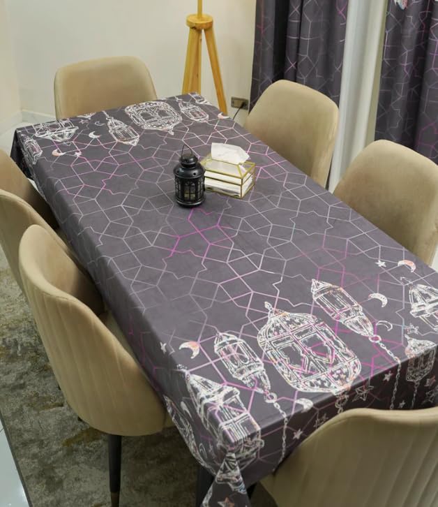 Generic - Velvety Soft Fabric Tablecloth with Lantern Pattern, Grey and Pink, Multiple Sizes Available, 90x90 to 140x280 cm (140 * 240)