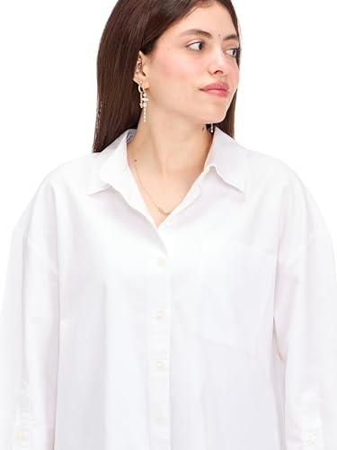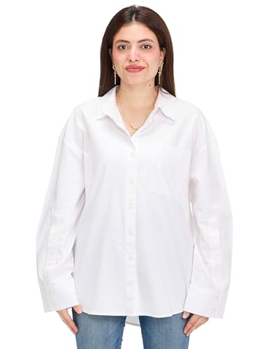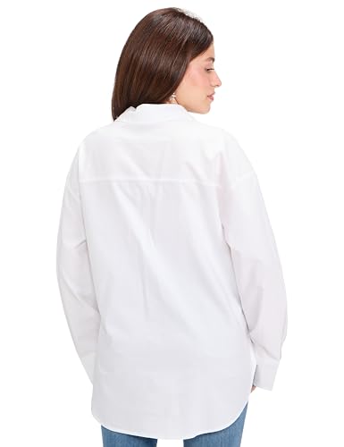 VERO MODA - قميص نيلي اوكسفورد منسوج عصري بأكمام طويلة للنساء من فيرو مودا، (عبوة من 1 قطعة)