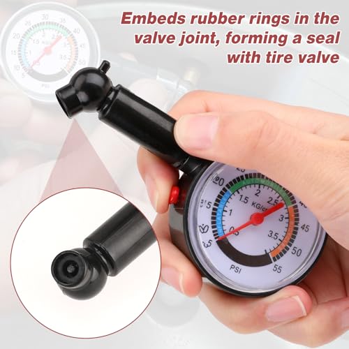 - MATERIAL: This tire pressure gauge is entirely made of plastic, strong and lightweight, with a smooth dial and easy to grip, making it easy for you to carry it with you.