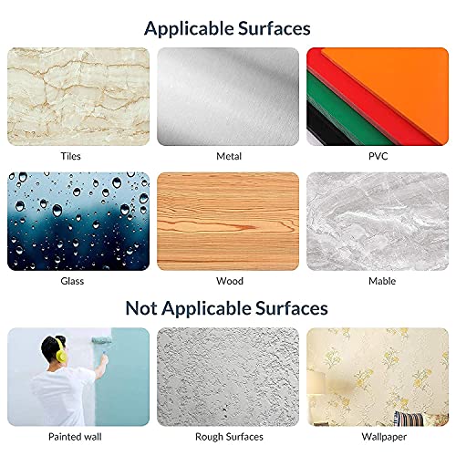 - استخدامات متعددة: يستخدم على نطاق واسع على الأسطح الملساء الصلبة مثل بلاط السيراميك وباب الثلاجة وخزانة الملابس والرخام والخشب والبلاط والمعدن والسيراميك والمرآة والستانلس ستيل والأكريليك والبلاستيك والأسطح المعزولة وأكثر من ذلك. (لا يوصى بالجدار الليموني والجدار المطلي والجدران الجافة وورق الحائط مع ملمس لتجنب السقوط أو إتلاف الحائط).