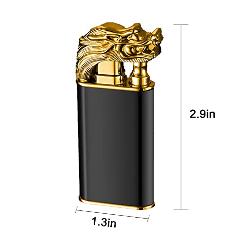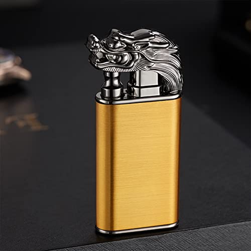 VPONA - Magic Double Flame Lighter, Unique Creative Metal Torch Windproof, Cool Fancy Double Jet Flame Lighters for Camping BBQ, Kitchen, Men Gift, Refillable Butane Lighter (Gold, Drgon Style)