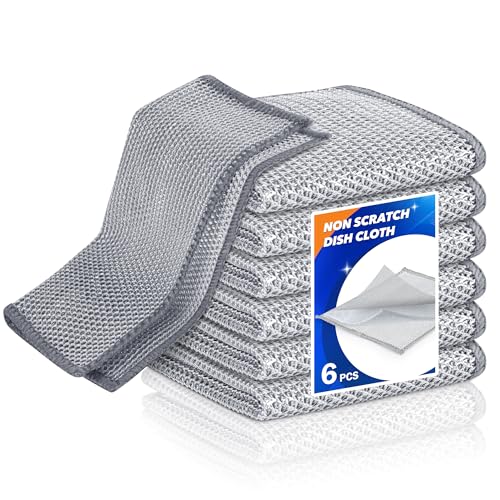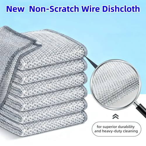 VTOINKK - Non-Scratch Wire Dishcloth - Multipurpose Wire Dishwashing Rag for Pots, Pans, Glassware & Grills, Durable and Fast-Drying Kitchen Scrubber (6PCS)