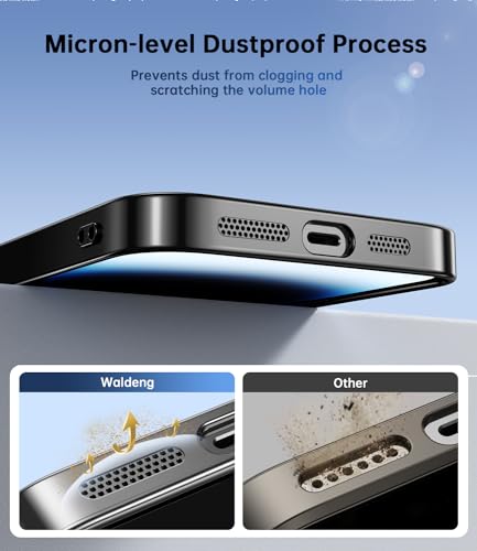Waldeng - جراب حماية لموبايل ايفون 15 برو مع مدمجة لعدسة الكاميرا [يعمل بسلاسة ماج سيف] [ممتص صدمات ناعم لامع معدني] انيق شفاف ماسي تيتانيوم اسود البولي يوريثين الحراري
