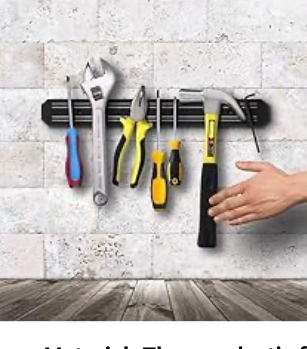 - * مع الأشرطة المغناطيسية عالية القوة، ستتمكن من تخزين سكاكينك أو أدواتك بأمان بعيدًا عن متناول الأطفال * لا مزيد من البحث عن الولاعات والسكاكين في أرجاء المطبخ. تتضمن العبوة شريط تعليق سكاكين مغناطيسي ومسامير تثبيت * رائعة لتوفير المساحة * المادة: إطار بلاستيك حراري، قضبان معدنية