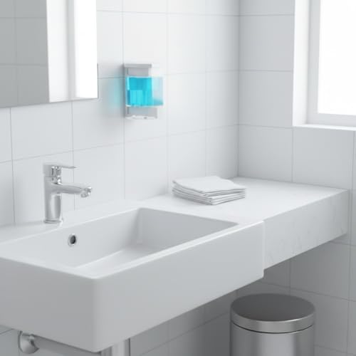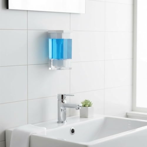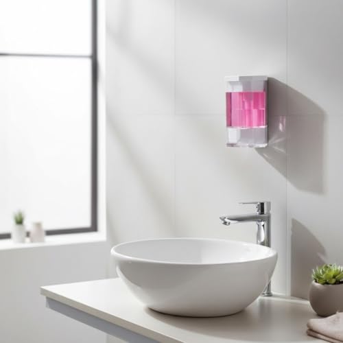 Deinhaus - موزع صابون سائل يثبت على الحائط - موزع صابون ومنظف ابيض مع وعاء شفاف - للاستخدام في المطبخ والحمام