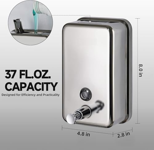 - Easy to clean: This soap dispenser is mirror brushed, making it easy to clean dirt from the item itself. The soap dispenser has a 500 ml (17 oz) capacity, which reduces maintenance in commercial locations where it is used frequently. Ideal for commercial and home use, such as hotels and restrooms.