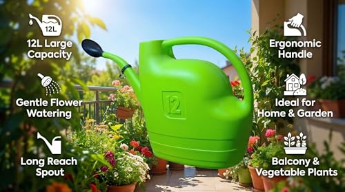 • LARGE CAPACITY: 12 liter water jug ideal for watering indoor and outdoor plants without frequent refilling