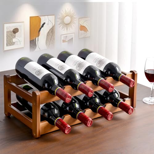 - EASY STORAGE: This vintage style wine rack can hold up to 8 bottles of wine. The two-tier design saves a lot of space and offers enough space for wine. The Wine Holder waveform prevents bottles from tilting, falling or shaking. With 1 silicone wine stopper