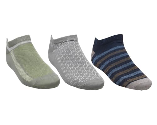 White FLOWER LIFE STYLE - White Flower Men Ankle Socks Set Pack of 3 Half Socks Size 40-45 - Multi Color L3-82