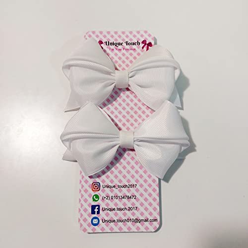 Generic - White Ribbon Bow Hairbands -Set of 2 (White)