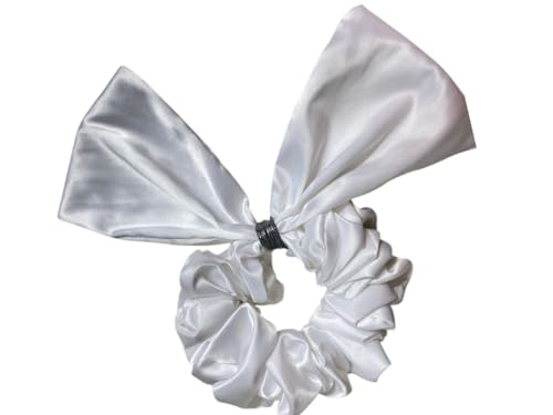 Generic - White Satin Hair Tie with Bow, Silk Hair Accessory, Elegant Design