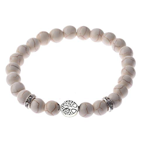 Generic - سوار الفيروز الابيض حجر التفاؤل مع شجرة الحياة فضي، للجنسين