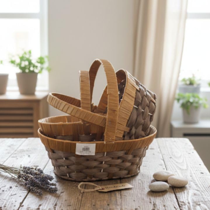 Generic - Wicker Basket Set 3 Pieces With Handle - Practical Design For Storage, Organization And Daily Use AR