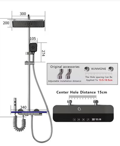 • ADVANCED DESIGN: 300*200mm large rain shower head with LED temperature display for precise control