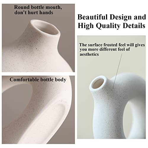 - 【تصميم عصري فريد】- إذا سئمت من تلك التصميمات الباهتة والمملة، فسوف تنجذب بالتأكيد إلى هذه المزهريات الخزفية البيضاء ذات التصميم المجوف الجميل لديكور المنزل. تصميم الدونات يجعل مزهريات الزهور فريدة وأنيقة؛ يمكنك الرؤية من خلال المجوفة أثناء الاستمتاع بالزهور الجميلة في المزهرية، مما يضيف المزيد من الرومانسية والأناقة إلى منزلك.