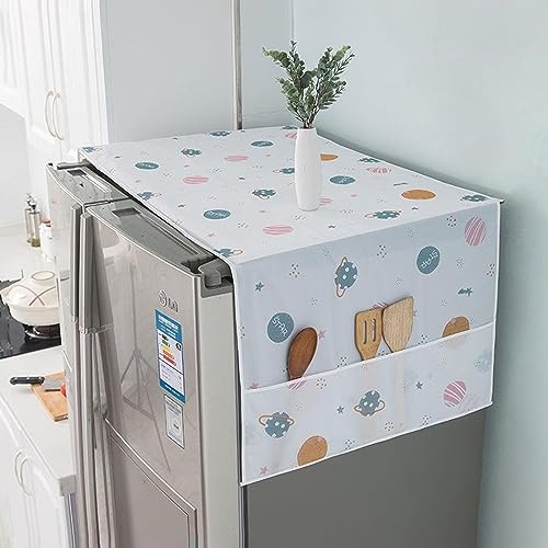 wolpin - wolpin 1 Pc Top Double Door Fridge Cover | Waterproof Refrigerator Protector with Designer Prints & 6 Utility Pockets for Kitchen Organization