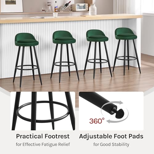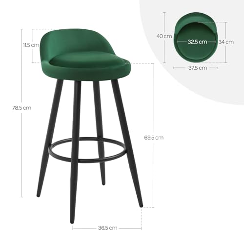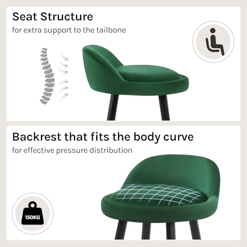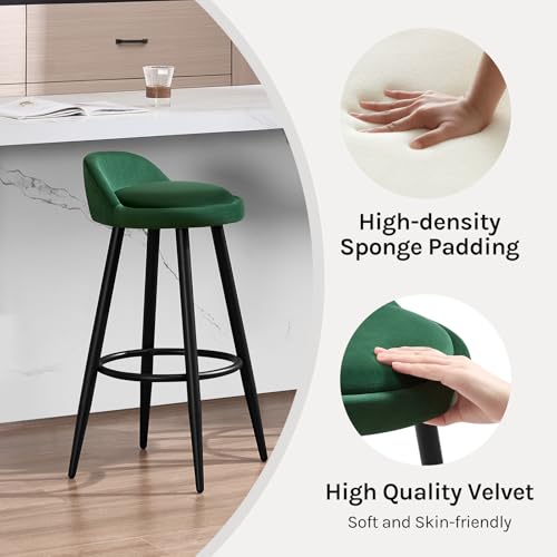 WOLTU - كرسي مطبخ مرتفع بسطح قطيفة بلون أخضر غامق، مقعد ثابت مع مسند للقدمين بأرجل معدنية من وولتو -BH296dgn-2