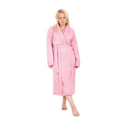 Dadoush - Women's 2 Piece Winter Polyester Nightgown with Tie Belt and Lace Detail
