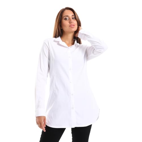 Generic - Women's Cotton Solid Long Shirt - White (White, M)