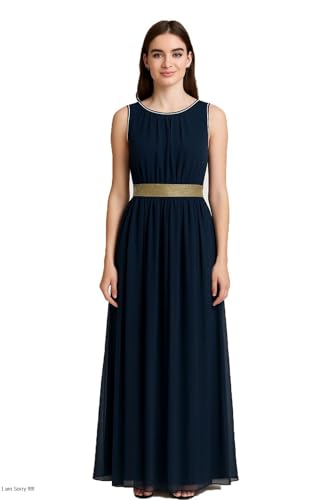 Generic - Women's Elegant Navy Chiffon Maxi Dress – Gold Waist – Fully Lined – Size S