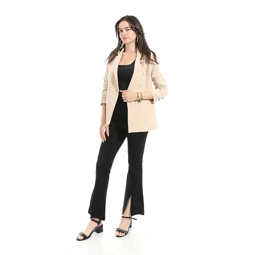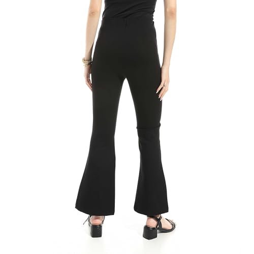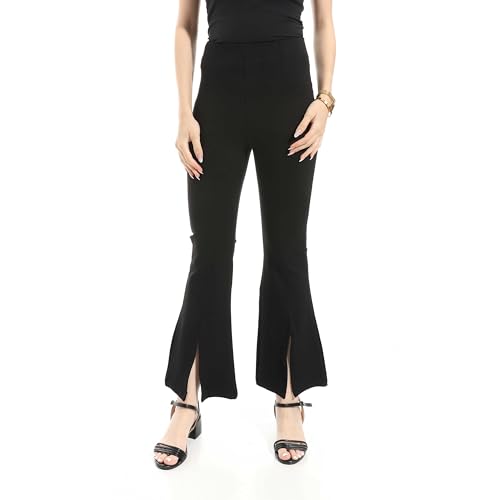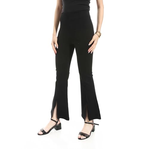 Coctail - بنطلون واسع بخصر مرتفع مع فتحات جانبية للنساء، اسود-9793