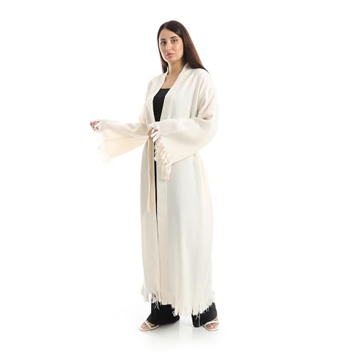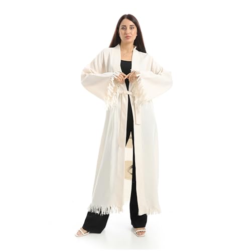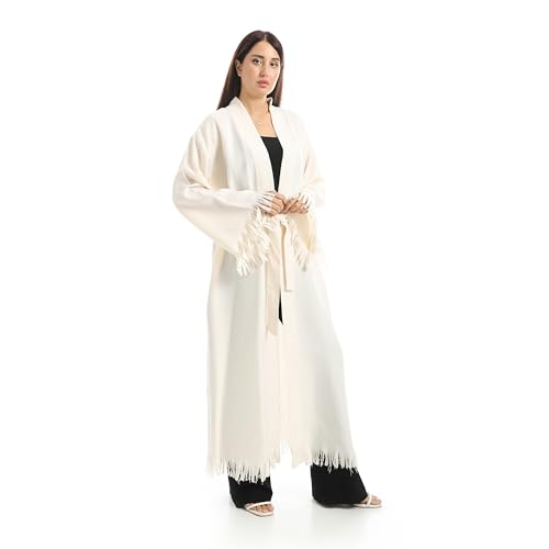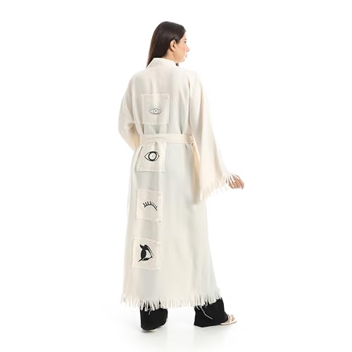 Coctail - Women's Long Kimono Robe, Fringe Detail, Eye Embroidery, Belted, Open Front