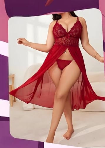 Generic - Women's Sexy Plus Size Nightgown Red Lace Long Sheer Big Size