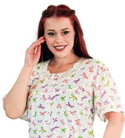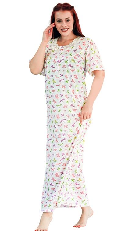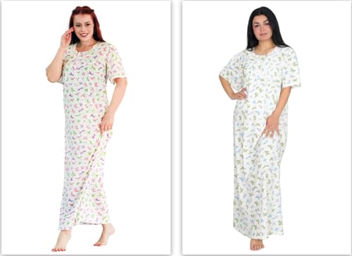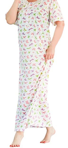 Dadoush - Women's Short Sleeve Polyester Cotton Floral Green Pink Long Nightgown