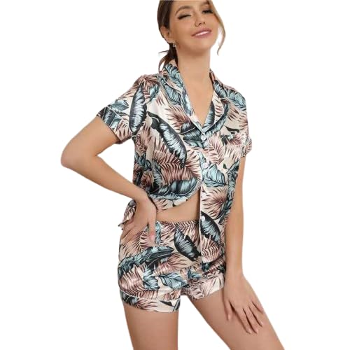 Generic - Women's Short Sleeves Satin Pajama Set with Short Leaf Size L