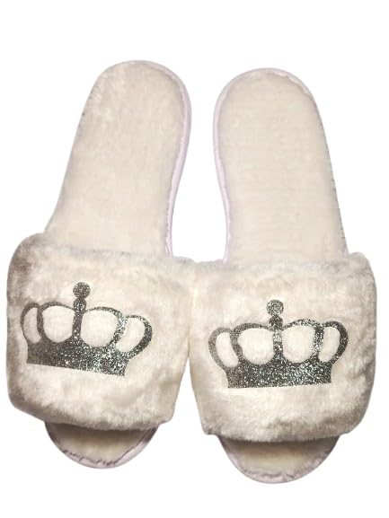 Generic - Women's White Fur Slippers 38/39 Silver Crown