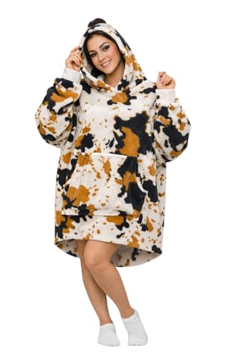 Generic - Women's Winter Hooded Blanket,Brown and Black Spot Pattern,Soft Fleece,with Front Pocket